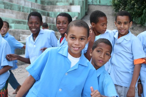 presque les pieds dans l'eau. On visite une école. Les enfants sont