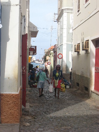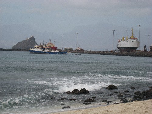 Dernier jour... cette fois-ci c'est vraiment le dernier. L'avion de 19h a déjà été repoussé. Le chauffeur nous dit: « Ah, c'est la TACV » de l'air de dire « est-ce étonnant? ». Donc notre avion devait théoriquement partir à 20h. Bon tout ce qu'on demande, c'est que le vol international de 2h du matin nous attende, car c'est le seul vol de la semaine! Bref on verra ça ce soir, pour l'instant nous allons nous promener dans Mindelo. Le sac est fait, on prend juste les appareils photos et on va faire des zigs et des zags dans les rues de Mindelo. On traverse le marché aux poissons, c'est étonnant, les thons découpés, les maquereaux et sardines, poulpes et calamars. Autour d'une table c'est l'affluence, ça crie, ça bouscule, ça s'énerve. On ne comprend pas trop bien, mais visiblement c'est un genre de criée. On n'ose pas faire de photos. Puis au détour des zigs, on passe par le marché aux légumes. C'est là qu'on redécouvre la vraie forme des tomates, carottes, etc. Ce n'est pas rond, ce n'est pas tout rouge, et c'est plein de taches. Puis on continue nos zags. Autour de midi on s'assoit dans une rue remplie de femmes vendant dans leur bassines toutes sortes de légumes, poissons, etc. On feuillète notre guide de Mindelo. Nous lançons notre dévolu sur le restaurant « Nell's ». Très bon choix. Le tartare de thon en entrée est fondant dans la bouche, et la feijoada de poisson est succulente sans compter les poulpes grillés pimentés à souhait. Le tout accompagné d'un punch mel. Je ne sais pas si c'est le punch ou le soleil, ou la digestion, mais nous n'avons le courage de rien faire. On se traine sur un banc municipal où nous commatons une bonne heure, puis nous prenons notre courage à deux mains pour essayer de trouver quelque chose pour Célian. Nous échouons dans le café CASA pour prendre un coca et un super milkshake banane, et on s'effondre dans les canapés pour ne plus se relever, deux vraies carpettes, dur les vacances. Plus que 3 heures avant d'aller à l'aéroport pour prendre le vol intérieur pour SAL qui sera sûrement en retard. On retrouve par hasard France, qui elle aussi a été impressionnée par la traversée en bateau. Elle vient juste d'arriver à Mindelo. Nous lui montrons la salle de capoeira (car elle pratique ce sport en France, France). On se grignote quelque chose (on ne sait jamais avec les avions). Puis on retrouve notre chauffeur de taxi pour aller à l'aéroport. Le vol à effectivement 1 heure de retard. Arrivés à SAL, pas de vol pour la France d'affiché. Bon ce n'était pas la panique, mais on est quand même allé se renseigner. Soulagement il parait que c'est normal. Bon on leur fait confiance. Effectivement une petite heure avant l'heure annoncée l'avion est finalement affiché alors que les avions du lendemain y étaient déjà. Bref nous voici donc en vol pour Paris (vol de nuit où on va essayer de dormir 3 ou 4 heures). Les vacances sont finies, comme vous avez pu le lire, et voir, elles ont été superbes. Conseil: c'est le moment d'aller se balader au Cap-Vert. Dans quelques années nous craignons que les plans d'urbanisme et de constructions aient transformé ces fragiles iles en une réplique des caraïbes, mais avec un manque cruel d'infrastructures et d'eau. Bref chassez la nature, ici elle aura du mal à revenir au galop.