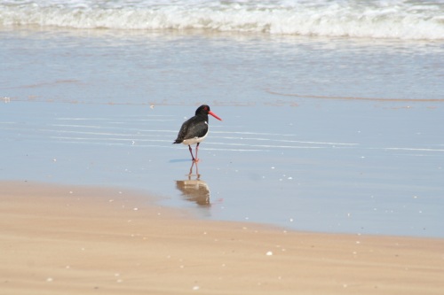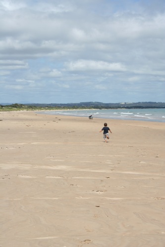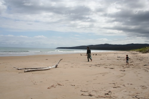 Petit déjeuner au soleil, ça fait du bien. Séance de boomerang dans la prairie de devant le visitor center. Il n'y a pas de wallaby à chasser à cette heure là. On va ensuite faire une promenade sur la plage. On cherche et on trouve quelques coquillages, étoiles de mer et poisson porc-épic. On s'amuse bien et c'est joli sous le soleil. Mais les nuages ne sont pas loin. Ensuite journée étape, on veut aller jusqu'à St Helens. Ca ne fait que 200km mais c'est bien 4h de route. Donc départ 1h de la plage, arrêt déjeuner dans un petit village sympathique, au bord de la rivière (qui est en fait quand même un bon port qui donne sur l'estuaire). En dessert il y a même une glace. La route est sinueuse, ça monte et ça descend. On passe par des forêts tropicales (rain forest) et devinez quoi, il pleut ! On arrive à St Helens vers 7h. On s'installe au super camping, il y a un terrain de jeux et même un bouncing pillow. Célian s'éclate. On mange dans la cuisine commune. Et on finit la journée par une partie de billard (minable les joueurs), sous l'insistance de Mr Célian. 10h tout le monde dort. |